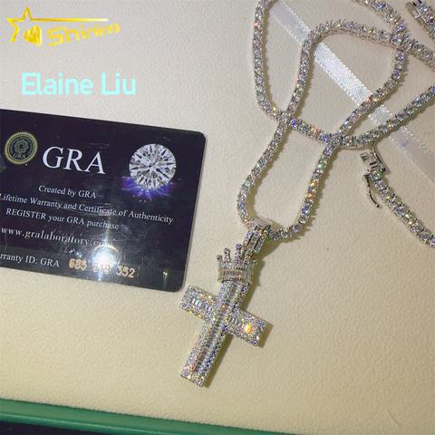Dカラー VVS モアサナイトダイヤモンド スターリングシルバー925 ファッション ラグジュアリー クロス ファインジュエリー モアサナイト ヒップホップ ペンダント